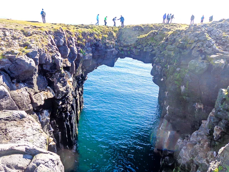 Walking across a small footbridge that symbolically spans the divide between the Eurasian and North American tectonic plates.