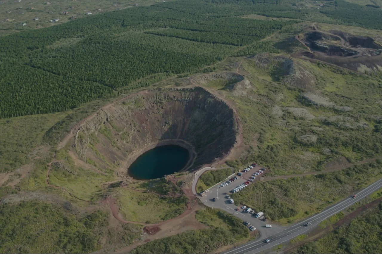 A natural crater formed when a magma chamber emptied causing the ground above it to collapse. This natural crater lake is a staple of sightseeing in Iceland