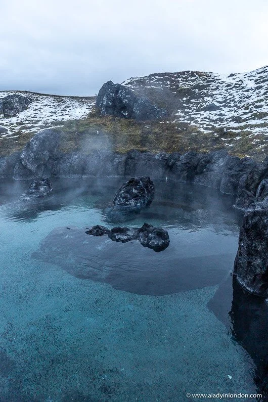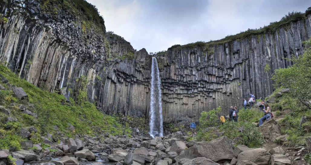 A short hike up to the Black waterfall which flows over hexagonal basalt columns