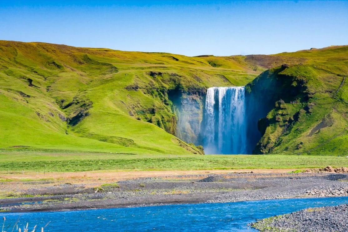 Taking a short drive and climbing 527 steps will bring us to Skógafoss, one of the largest waterfalls in Iceland with a view of the coast.